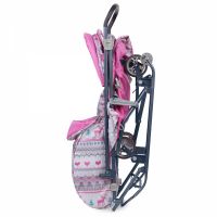 • складной высокий двухсекционный козырек с дополнительной дугой на спинке позволяет чувствовать себя комфортно малышу в шапке с помпоном
