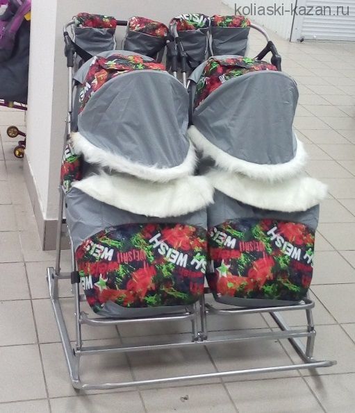 Санки коляска для двойни Мое детсво с колесиками