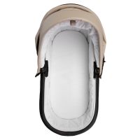 Люлька коляски выполнена из цельнолитого материала, что обеспечивает надежную защиту малыша от ветра и влаги. Ее хлопковые чехлы на молнии легко и удобно снимать для стирки, а ветрозащитный капюшон с окном на магните позволяет следить за малышом, не открывая люльку.