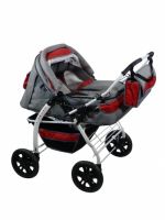 Коляска для двойни с двумя переносками и отдельно регулируемыми спинками