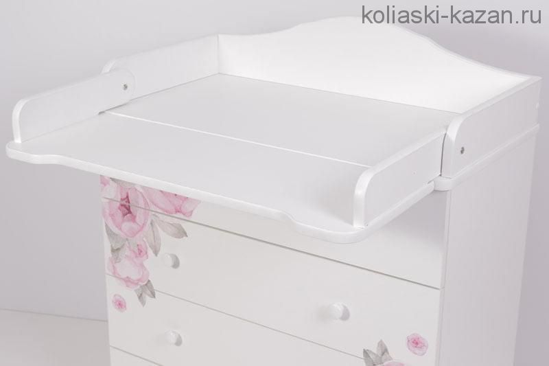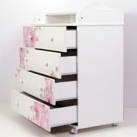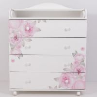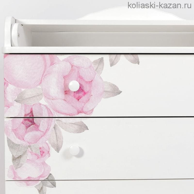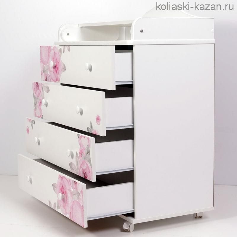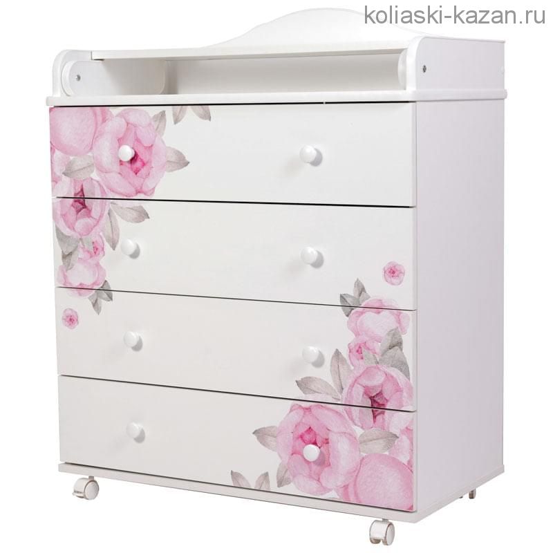 Комод пеленальный Топотушки Пионы ЛДСП белый+принт 4 ящика 844/4
