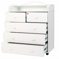 Когда малыш подрастёт, крышку можно будет снять. Комод имеет пять вместительных ящика для хранения детских вещей.