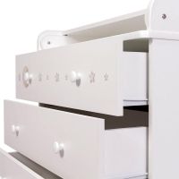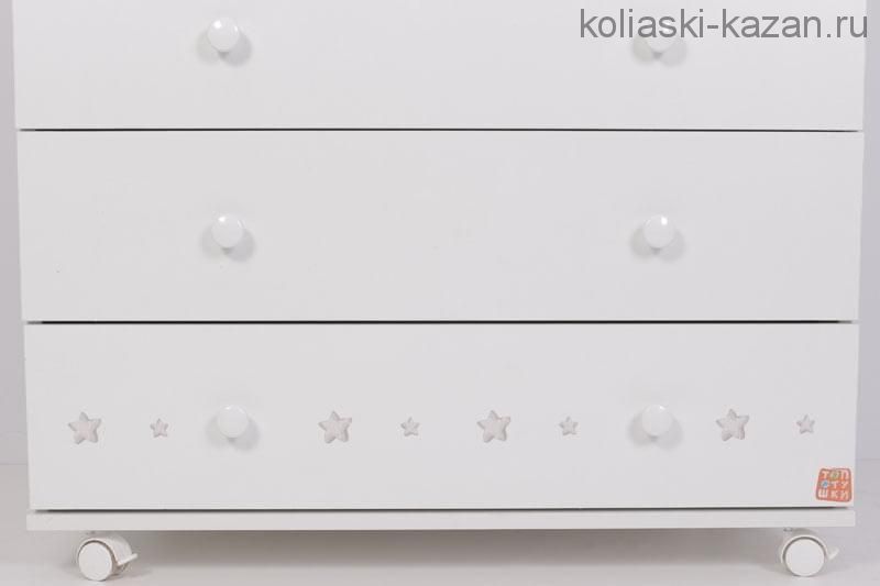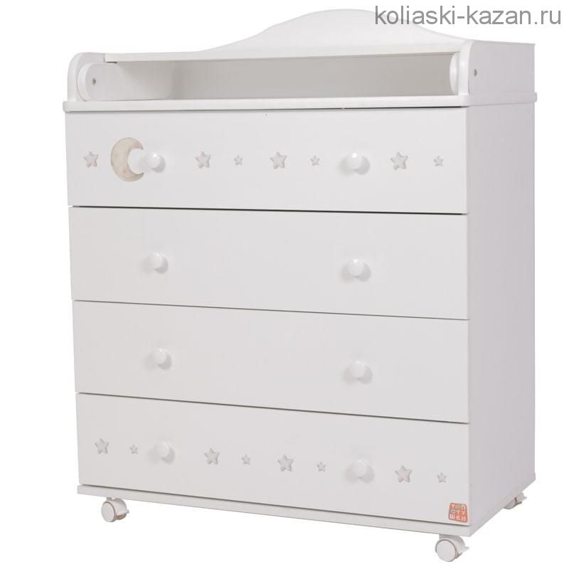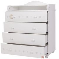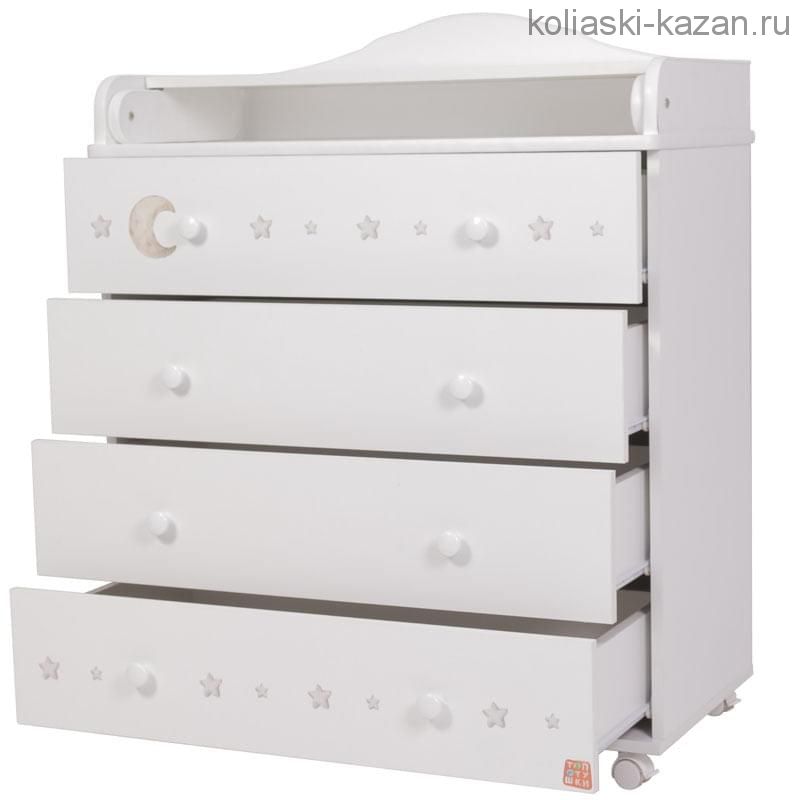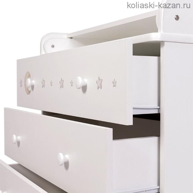 Когда малыш подрастёт, крышку можно будет снять. Комод имеет четыре вместительных ящика для хранения детских вещей.