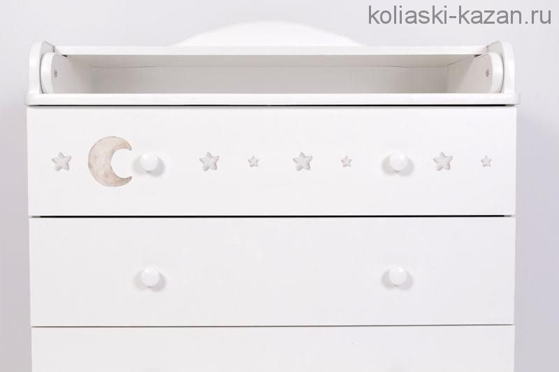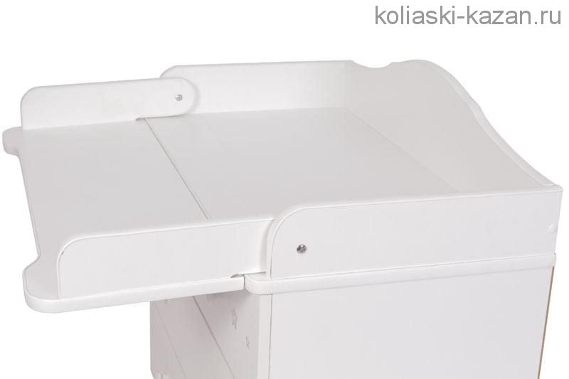 Пеленальный комод имеет откидную крышку, превращающую его в полноценный пеленальный столик.