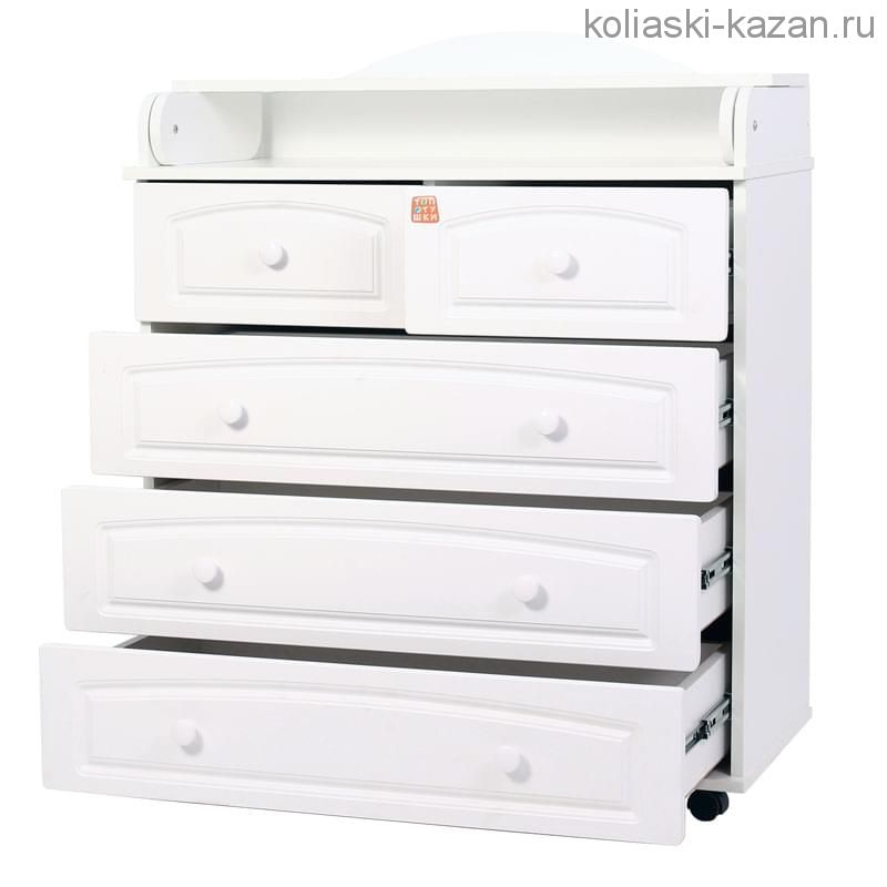 Когда малыш подрастёт, крышку можно будет снять. Комод имеет пять вместительных ящика для хранения детских вещей.