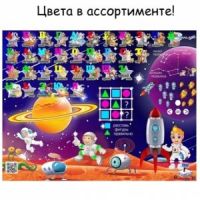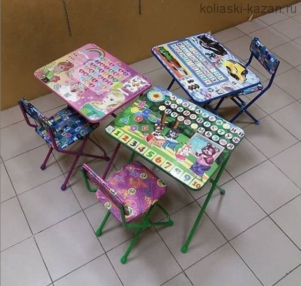 На столешнице нанесены обучающие и познватаельные рисунки, есть персонажи из мультфильмов, алфавит, цифры и другое