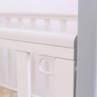 Изящный дизайн, плавные линии, умеренная цена и высокое качество обработки дерева- вот главное преимущество этой модели! Для удобства наклона к малышу, верхняя планка переднего ограждения опускается нажатием кнопки. Ортопедические свойства ложа обеспечивают гнутые рейки "латофлекс". Для защиты зубок ребенка и поверхности ограждения, на верхние планки кроватки крепятся специальные накладки "грызунки". Специальные пластиковые направляющие обеспечивают плавность хода ограждения при перемещении. Комплект оснащен дополнительной планкой, придающей конструкции жесткость и позволяющей превратить кроватку в полноценный диванчик.