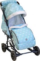 • колеса с увеличенным диаметром позволяют комфортно передвигаться по тротуару, а выдвижные полозья по рыхлому снегу