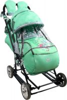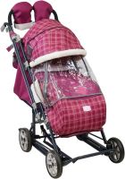 • съемный прозрачный тент от ветра и дождя с двумя молниями, крепится к чехлу коляски на пуговицу