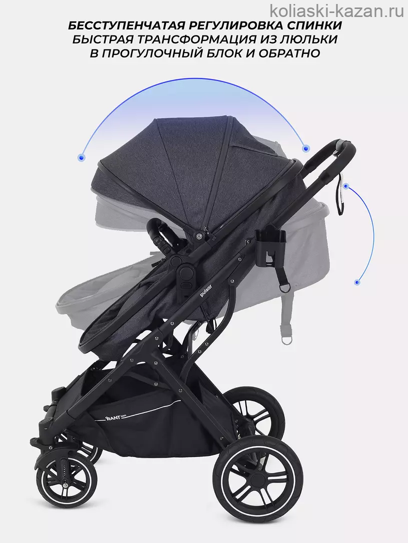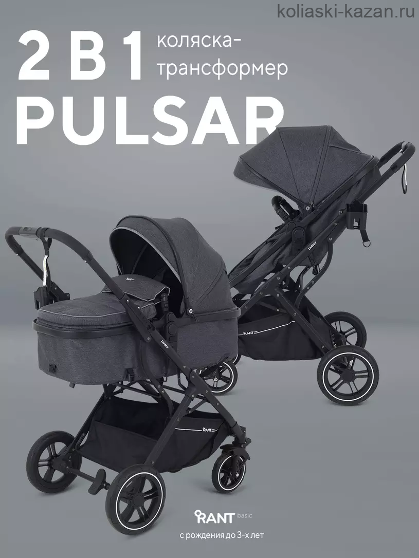 Детская коляска-трансформер RANT BASIC PULSAR - эргономичная и вместительная! Особенности модели: трансформация в два движения; реверсивный блок; подстаканник для любимых напитков; тормоз-"качелька", не пачкающий обувь.