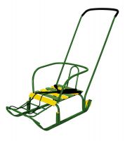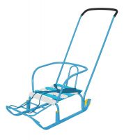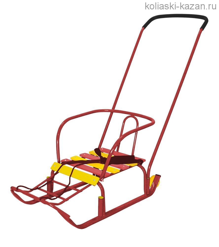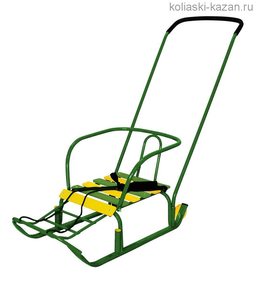 Материал: каркас – металл; сидение – деревянные рейки; ремень безопасности – ременная лента; колеса – морозостойкая пластмасса