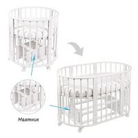 Система 8 в 1: овальная кровать, круглая кровать, пеленальный столик, диван, манеж, столик для кормления, 2 стула.