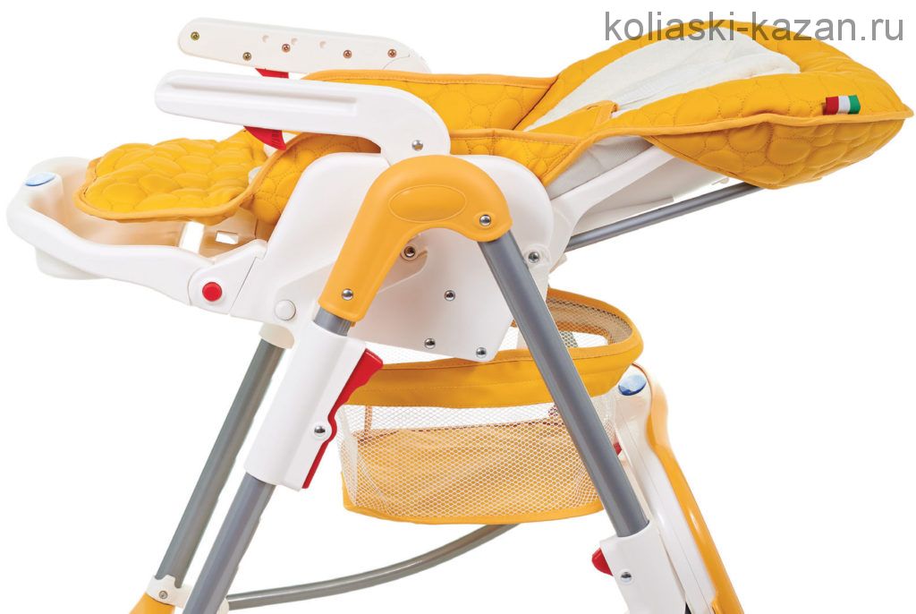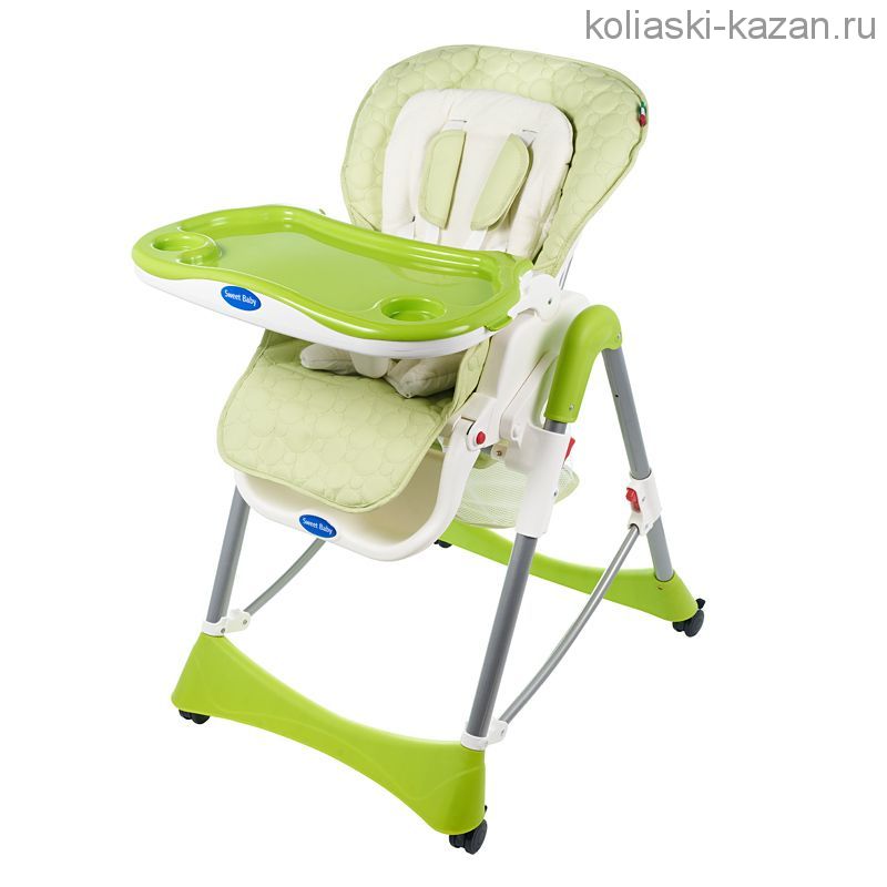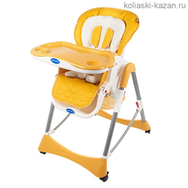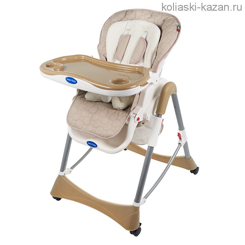 Стульчик для кормления Sweet Baby Royal Classic - практичная модель с накладкой из комфортной ткани и уютным матрасиком. Снабжена массой современных функций, которые позволяют использовать ее не только в качестве обычного стульчика для кормления, но и как место для отдыха. Для этого производитель предусмотрел раскладывающуюся спинку и регулируемую подножку. Помимо этого, детский стульчик снабжен столиком со съемным подносом, корзиной для игрушек и колесиками.